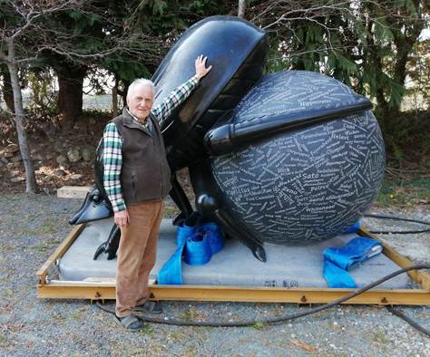 granite dung beetle Tiffany, rolling the philosopher’s turd, encouraged by the ageing host, Victor All